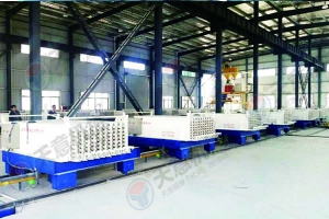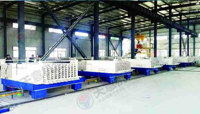 TY12型墻板生產(chǎn)線包括:墻板成型機、整體穿抽管系統(tǒng)、發(fā)泡系統(tǒng)、水箱、電子計量儲料倉、螺旋上料輸送機、儲料罐、螺旋輸送機、EPS熟化料倉、硫化干燥床、EPS預(yù)發(fā)機、數(shù)控配電室、發(fā)泡攪拌機、整體出板系統(tǒng)、叉車、成品堆放區(qū)、擺渡車。